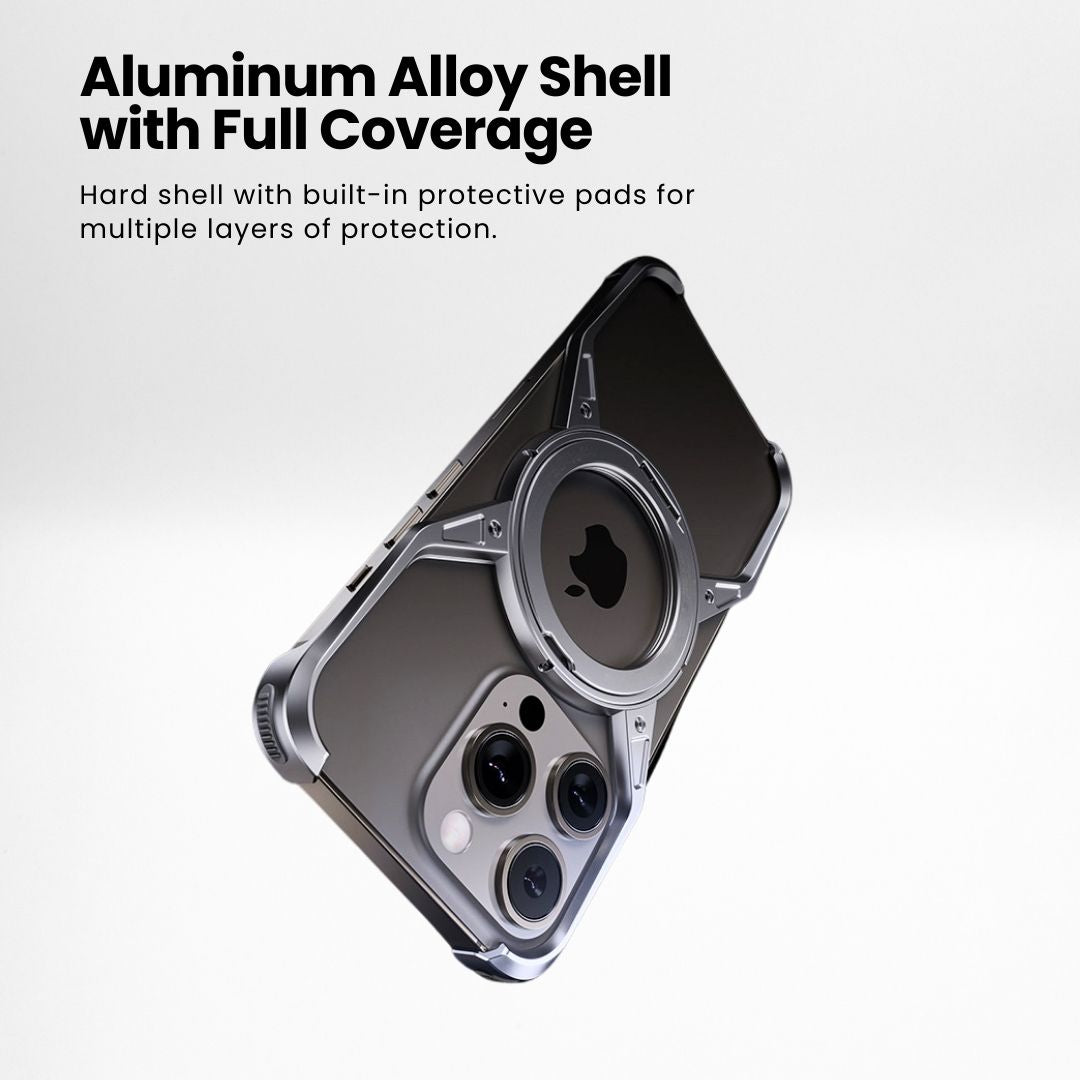 🛡️ Full Coverage Protection: The aluminum alloy shell with built-in protective pads offers multiple layers of defense against drops and impacts. Raised protection with screw locks ensures your phone case stays securely intact, even with heavy drops.